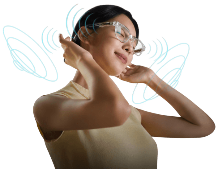 Glass 1's audio intelligence plus visual overlays. Text, icons, status, navigation in your peripheral vision.